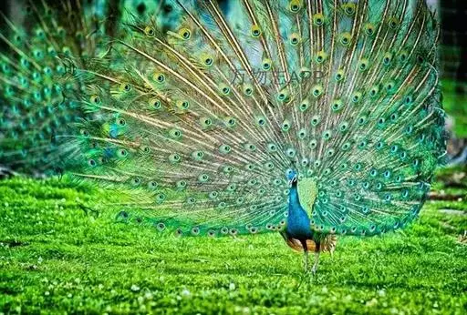 绿孔雀(学名:Pavo muticus)大型鸡类,体长180~230厘米。雄鸟体羽为翠蓝绿色,头顶有一簇直立的冠羽,下背翠绿色而具紫铜色光泽。体后拖着长达1米以上的尾上覆羽,羽端具光泽绚丽的眼状斑,形成华丽的尾屏,极为醒目。雌鸟不及雄鸟艳丽,亦无尾屏,体羽主要为翠金属绿色,背浓褐色,头顶亦具一簇直立羽冠。外形和雄鸟相似,亦甚醒目,中国还未见有与之相似种类,野外容易识别。