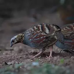 觅食:食性较杂,主要吃川梨(Pyrus pashia)、黄泡(Rubus obcordatus)果实、幼树枝叶、芽苞、蘑菇、草子、豌豆、稻谷等植物和农作物,也吃蚱蜢、蟋蟀、蛾、白蚁、蝽蟓、蚯蚓、蜥蜴、蛙等动物性食物。常成5~10只小群边走边觅食,尤以清晨和临近傍晚时觅食活动较为频繁。