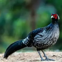 黑长尾雉大型鸡类,体长53~88厘米。雄较雌大。雄鸟通体紫蓝色,脸鲜红色,翅上有一条显著的白色翅斑…