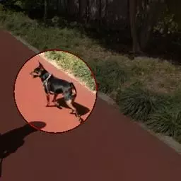 抬起狗的脚,用剪子剪狗脚垫儿间的毛。剪的时候注意要把剪子贴着狗脚垫儿的外沿儿。