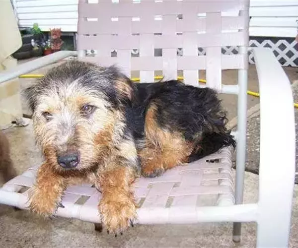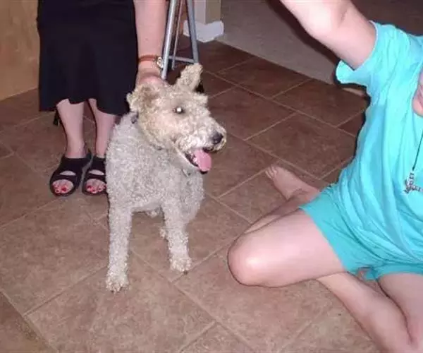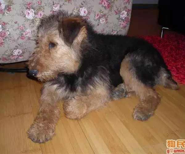 【皮毛】硬,密,尖,直立且紧凑,覆盖全身及腿部。最硬的一些卷曲或有轻度的波纹。在硬毛的底部有一些较柔软并且长的或短的毛。