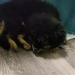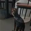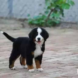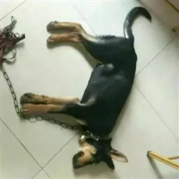 【毛色】头和耳部应为棕褐色,耳部较其余部位颜色深。颅骨两侧颜色较深是允许的。从腿部到大腿及肘部、躯体下部,胸部也是棕褐色,肩部通常为棕褐色。躯体两侧和上部应为黑色或暗灰色。在黑色中常会发现一些红色,这是允许的。胸部的小白点是该品种中具有某种血统的犬的特征。