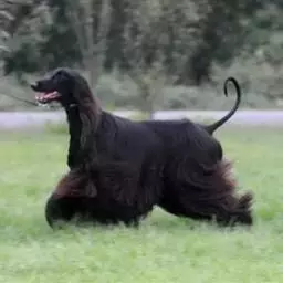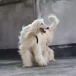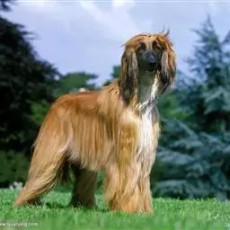 阿富汗猎犬全身披丝绢状的长毛,毛色鲜艳,呈多种颜色,背中线附近毛短,…