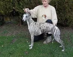 头部均匀,颅骨的宽度和前脸的长度基本一致。颅骨长而平。头皮无皱,平静时几乎看不到。耳位于头侧面,呈V形,小。耳尖高于颅骨的水平线。前脸深,强壮有力,肌肉发达。眼前方丰满。眼睛暗,小,不凸出.充满了梗的表情,机敏。嘴唇紧收。鼻子黑,但不太小。牙齿坚硬,白,无其他杂色及缺损。咬合好或基本咬合。