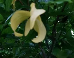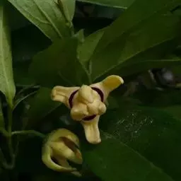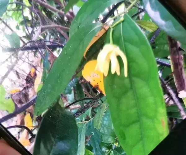 攀援灌木,长达6米;小枝被黄色粗毛。叶革质,椭圆状长圆形至长圆形,长6-12厘米,宽2.5-4厘米,顶端急尖或钝,基部近圆形或稍偏斜,两面无毛,或仅在下面中脉上被疏柔毛,叶面有光泽;侧脉每边8-10条,两面均凸起,远离边缘而联结,网脉疏散,明显;叶柄长2-5毫米,被疏柔毛。花单生;花梗稍长于钩状的总花梗,被疏柔毛;萼片三角形,长约3毫米,近无毛;花瓣卵状披针形,长10-18毫米,基部卵形,凹陷,外轮花瓣密被丝质柔毛,厚质,内轮花瓣长10-12毫米;雄蕊楔形,药隔三角形,顶端隆起,被短柔毛;心皮卵状长圆形,无毛,每心皮有胚珠2颗,基生,柱头短棍棒状。果椭圆状,长2-3.5厘米,直径1.5-3厘米,干时黑色。花期4-7月,果期5-12月。