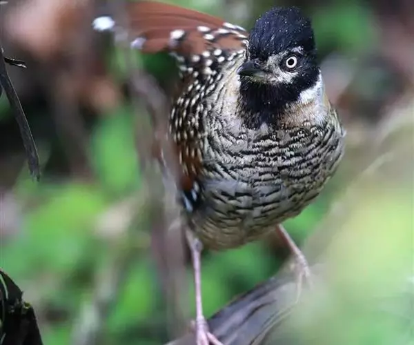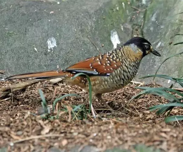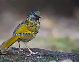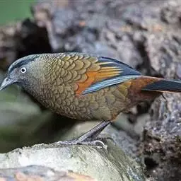 蓝翅噪鹛:噪鹛科、彩翼噪鹛属动物。中型鸟类,体长22-25厘米。上体棕橄榄褐色密被黑色鳞状斑,…