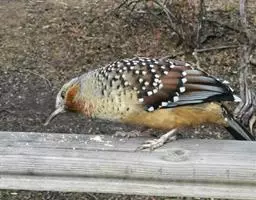 上体棕褐色,各羽均具黑色次端斑和白色或棕白色点状端斑,有时上背呈棕黄色具宽阔的黑色次端横斑。其余上体棕黑褐色具白色端斑,次级覆羽栗色具黑色次端横斑和棕白色端斑;内侧飞羽和覆羽与背同色。初级覆羽栗色具白色端斑和黑色次端斑,飞羽黑褐色具白色端斑,最外侧1-2枚初级飞羽内外翈均为黑褐色,其余飞羽外翈基部蓝灰色或灰色,向内逐渐扩大,然后逐渐变为棕褐色或栗色,到最内侧次级飞羽外翈几全为棕褐色或栗色,所有飞羽均具白色端斑。