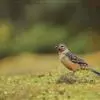 大草鹛中型鸟类,体长31~34厘米。上体灰色具粗著的黑褐色条纹,腰和尾上覆羽纵纹不明显。颊和耳羽灰色,…
