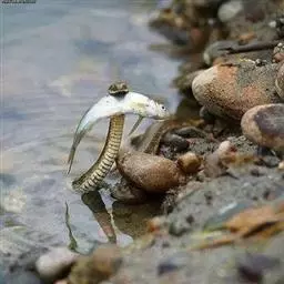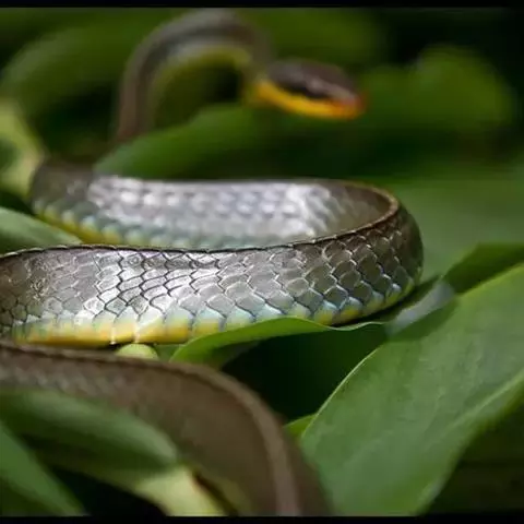 红脖颈槽蛇(学名:Rhabdophis subminiatus):为游蛇科颈槽蛇属的爬行动物,俗名野鸡项、红脖游蛇、扁脖子,属后毒牙类毒蛇。体型中等大小,全长约77-95厘米。头背草绿色,上唇鳞色稍浅,部分鳞沟黑色;头腹面污白色。躯干及尾背面草绿色,颈区及体前段鳞片间皮肤腥红色;躯干及尾腹面黄白色。头颈区分明显,颈及体前段背正中两行鳞片并列,个别无颈槽;眼较大,瞳孔圆形。上颔齿23-25枚,最后2枚骤然增大,与其前方齿列间有一间隙。