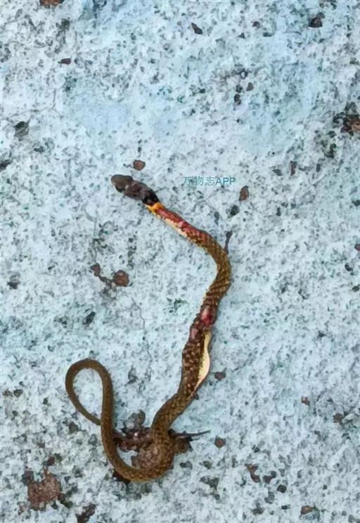 红脖游蛇属游蛇科游蛇属,毒牙无沟、无管,但呈利刃状似应称之为利牙。利牙类毒蛇的毒牙着生在口角内侧上颌的后端,毒牙短,且毒腺不发达,分泌量少,咬人时很难用毒牙咬到人体,除非被咬物被深深纳入口内,否则难以触及利牙,因此,通常不易造成中毒。该蛇的毒素为血液毒素,一旦进入人体即可引起血液失凝,完全脱纤维蛋白状态。