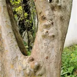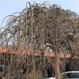 树皮暗灰色,粗糙,不规则纵裂。幼树枝条直立,且被白色毛;老树枝条先端下垂,有时木栓质发达成为瘤状。…