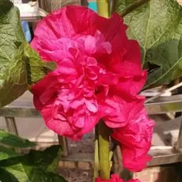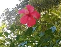朱槿(学名:Hibiscus rosa-sinensis Linn. ):又名扶桑、佛槿、中国蔷薇。汉语拼音:zhujin。由于花色大多为红色,所以中国岭南一带将之俗称为大红花。常绿灌木,高约1-3米;小枝圆柱形,疏被星状柔毛。叶阔卵形或狭卵形,两面除背面沿脉上有少许疏毛外均无毛。花单生于上部叶腋间,常下垂;花冠漏斗形,直径6-10厘米,玫瑰红色或淡红、淡黄等色,花瓣倒卵形,先端圆,外面疏被柔毛。蒴果卵形,长约2.5厘米,平滑无毛,有喙。花期全年。