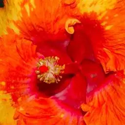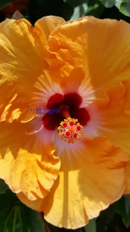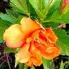 单瓣,花大,花径15厘米,黄色变为橙红色,具深红花心。