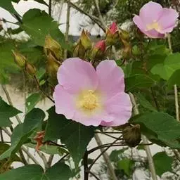 单瓣,花玫瑰红色。