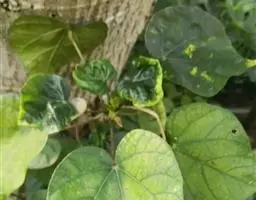 朱槿叶斑病是一种真茼性病害。多发生在秋末天气转冷时期,尤其北方地区入窖不及时更易发生。最初的症状是叶片出现淡黄色及红黄色斑点,病斑扩大后呈圆形或椭圆形,在比较潮湿的条件下,病斑上可出现黑色的粒状物,即病原菌的分生孢子器,后期叶片干枯脱落。该病害的防治关键是做好防寒工作,秋后大风降温时采取保护措施,在此基础上及时喷布500-800倍液的代森锌或1500倍%铵都可以起到很好的防治效果。