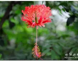 南朝诗人江总《朱槿花赋》赞云:“朝霞映日殊未妍,珊瑚照水定非鲜。千叶芙蓉讵相似,百枝灯花复羞燃。”诗人写了四样最美丽的东西,但跟朱槿花的艳丽比起来,就逊色得多了。