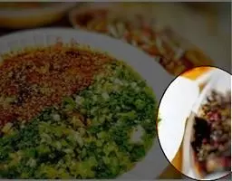 1、沙姜洗净刮去外皮,剁成细末;香菜去头,洗净沥干水待用。