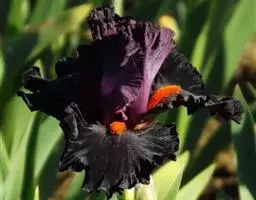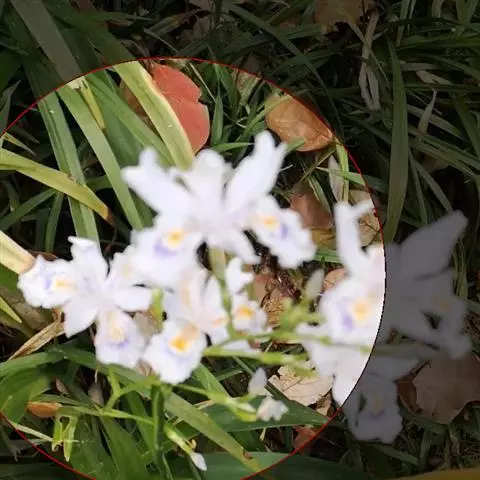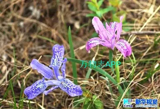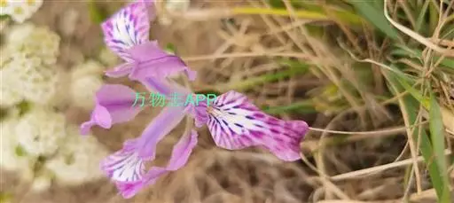 粗根鸢尾(学名:Iris tigridia Bunge ex Ledeb.):多年生草本,植株棕褐色。根状茎不明显,短而小,木质;须根肉质,有皱缩的横纹,黄白色或黄褐色,不分枝或少分枝;叶深绿色,有光泽,狭条形,无明显的中脉。花茎细,长2-4厘米,不伸出或略伸出地面;苞片2 枚,黄绿色,膜质,狭披针形,顶端短渐尖,内包含有1朵花;花蓝紫色,直径3.5-3.8厘米;外花被裂片狭倒卵形,有紫褐色及白色的斑纹,爪部楔形,内花被裂片倒披针形,顶端微凹,花盛开时略向外倾斜。蒴果卵圆形或椭圆形,果皮革质;种子棕褐色,梨形,有黄白色的附属物。花期5月,果期6-8月。