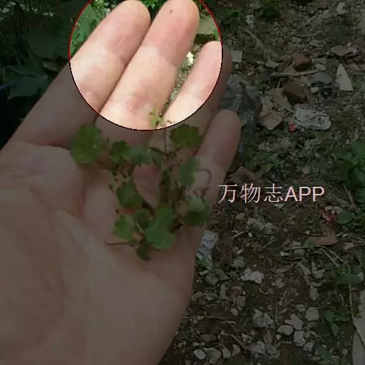 多年生草本,有气味。茎细长而匍匐,平铺地上成片,节上生根。叶片膜质至草质,圆形或肾圆形,长0.5-1.5厘米,宽0.8-2.5厘米,基部心形,两耳有时相接,不分裂或5-7裂,裂片阔倒卵形,边缘有钝齿,表面光滑,背面脉上疏被粗伏毛,有时两面光滑或密被柔毛;叶柄长0.7-9厘米,无毛或顶端有毛;托叶略呈半圆形,薄膜质,全缘或稍有浅裂。