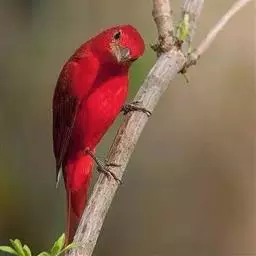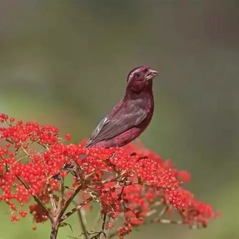 酒红朱雀小型鸟类,体长13~15厘米。雄鸟通体深红色,头部深朱红或棕红色,下背和腰玫瑰红色,…