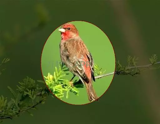 红腰朱雀:体长12-14厘米,小型鸟类。雄鸟前额和眉纹玫瑰粉红色,头顶和一宽的贯眼带深红褐色,背红…