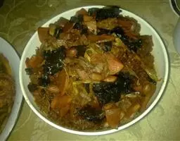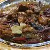手抓饭 “抓饭”,维吾尔语叫“坡撸(پولۇ)”,是维吾尔、土克曼、乌兹别克等民族兄弟以及中亚国家、俄罗斯联邦等民族执行宾客的风味食品之一。逢年过节、婚丧嫁娶的日子里,都必备“抓饭”待客。他们的传统习惯是先请客人们围坐在炕上,当中铺上一块干净餐布。随后主人一手端盆,一手执壶,请客人逐个淋洗净手,并递给干净毛巾擦干。待客人们全部洗净手坐好后,主人端来几盘“抓饭”,置餐布上(习惯是二至三人一盘),请客人直接用手从盘中抓吃。故取名为“抓饭”。有些家庭接待汉族客人,一般都备有小勺。