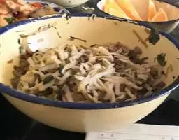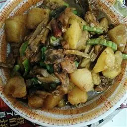 手抓饭 维吾尔群众中抓饭的种类很多,花色品种十分丰富。除了选用植物油外,还用黄油(奶油)来做抓饭。当然用黄油做的抓饭营养价值最高了。在用肉方面,除了用牛羊肉之外,还用雪鸡、野鸡、家鸡、鸭、鹅。雪鸡肉的抓饭味道最佳。不过,有的抓饭也不放肉,而选用葡萄干,杏干,桃皮等干果来做,称之甜抓饭或素抓饭,同样美味可口。到了夏天,维吾尔族人吃的抓饭花样还更多一些。南疆的维吾尔族人喜欢在抓饭里放一种“毕也”(木瓜),有的还放鸡蛋和菜。最有趣的是在做好的抓饭上放一些酸奶子,称之“克备克波糯”,它既是上等的充饥之物,又是消暑解热的食品。不过,维吾尔族人最讲究的要算“阿西漫吐”,也就是包子抓饭。在每碗抓饭里放上五、六个薄皮包子。抓饭和薄皮包子都是维吾尔族的上等饭,把这两者合在一起,真是好上加好,锦上添花。只有来了贵宾和亲朋好友,主人才会做这种饭来招待客人。