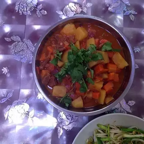 主料:带骨羊肉250g、胡萝卜1根、洋葱1/2个