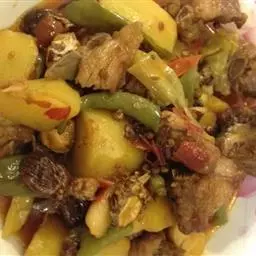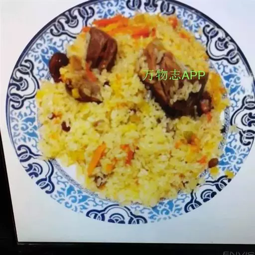 羊肉丁、葡萄干、胡萝卜、洋葱、孜然、大米。