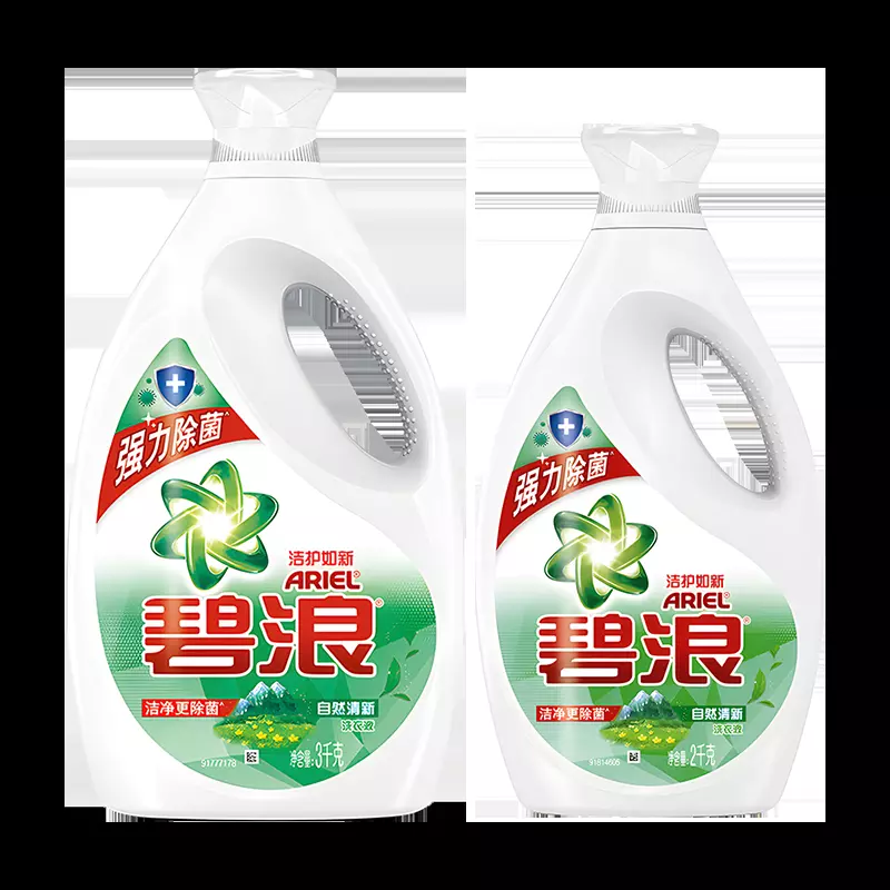 绿色装 蓝色装 2010年7月,碧浪品牌于中国推出“碧浪去渍超净洗衣液”。2011年11月,碧浪洗衣液全线升级,推出绿色装洁护如新洗衣液、蓝色装清雅茉莉香型洁护如新洗衣液。同时,碧浪选择华人天后小S作为品牌代言人。