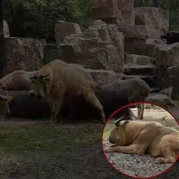 羚牛,偶蹄目牛科羚牛属哺乳动物,俗称扭角羚、野山牛、盘羊。其体形粗壮。尾短。吻鼻部隆起且裸露。…