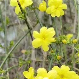 迎春花,木犀科素馨属的多年生木本植物,小枝细长直立或者呈拱形下垂;叶片呈卵形或椭圆形;花单生于叶腋处,…