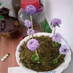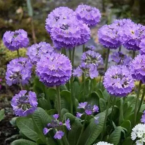 球花报春(学名:Primula denticulata Smith):春花科报春花属多年生草本植物,粗短的根茎。叶多枚形成密丛,叶片矩圆形至倒披针形,边缘具小牙齿和缘毛,上面被短柔毛或变无毛,下面沿叶脉被毛或近于无毛,花葶高可达30厘米,果期高可达45厘米,花序近头状,花直立;苞片多数,披针形,花梗极短;花萼狭钟状,裂片窄长圆状披针形,常染紫色,花冠蓝紫色或紫红色,极少白色,短花柱花:蒴果近球形,短于花萼。4-6月开花。