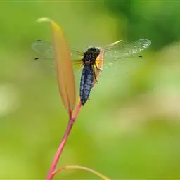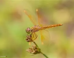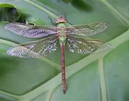 晓褐蜻系蜻科的一种中、小型昆虫,又名紫红蜻蜓。成虫腹长约25mm,后翅长约30mm。雄虫体色紫红,额头有蓝黑色金属光泽,翅脉 红色,翅基部有红褐斑,腹末节有小黑斑。