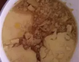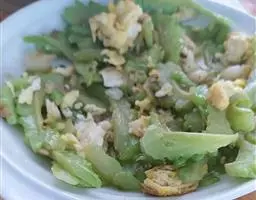 3.炒锅倒油烧热倒入蛋液炒散盛出备用。