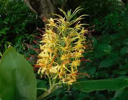 黄姜花:姜科,姜花属多年生草本草本芳香花卉,秋冬季开花,穗状花序,长圆形;苞片长椭圆形,覆瓦状排列,…