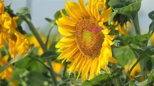 向日葵(学名:Helianthus annuus L.):是菊科、向日葵属的植物。因花序随太阳转动而得名。一年生草本,高1-3.5米,最高可达9米。茎直立,圆形多棱角,质硬被白色粗硬毛。广卵形的叶片通常互生,先端锐突或渐尖,有基出3脉,边缘具粗锯齿,两面粗糙,被毛,有长柄。头状花序,直径10-30厘米,单生于茎顶或枝端。总苞片多层,叶质,覆瓦状排列,被长硬毛,夏季开花,花序边缘生中性的黄色舌状花,不结实。花序中部为两性管状花,棕色或紫色,能结实。矩卵形瘦果,果皮木质化,灰色或黑色,称葵花籽。