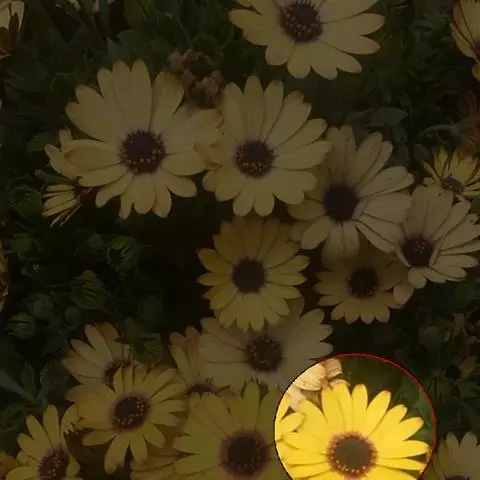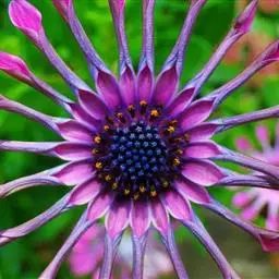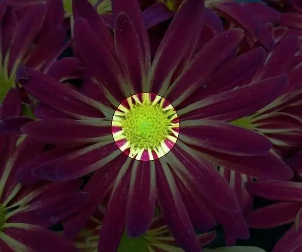 是一种结实的直立多年生植物,长2米,花头宽10厘米,深红色中心周围有明亮的黄色光线。