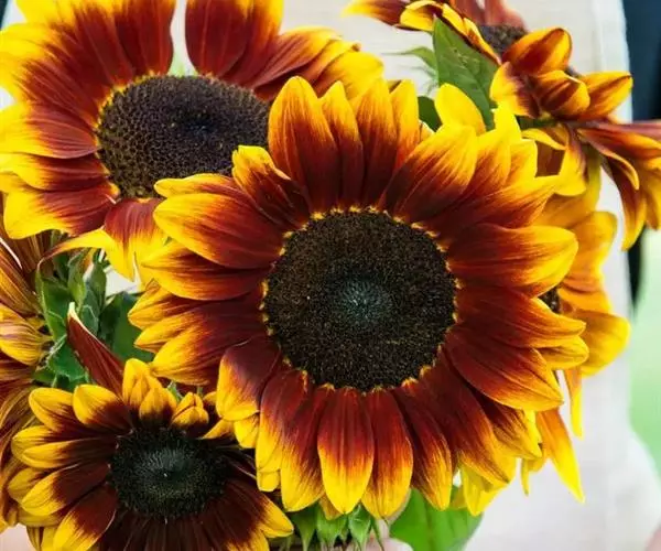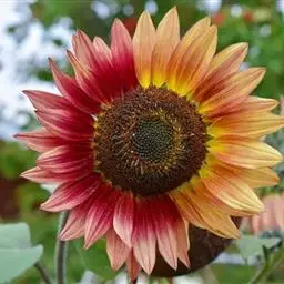 这个色彩鲜艳的杂交向日葵具有印度夏天的所有美丽,它在1.2-1.3米长的分枝植物上生长,具有丰富的红色、深金色、醇厚的黄色和锈色的双色阴影。