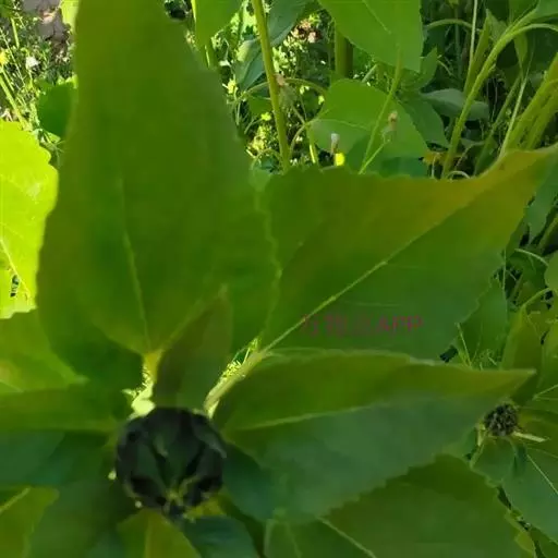 黑天鹅向日葵一年生草本植物,茎直立,圆形多棱角,质硬被白色粗硬毛。广卵形的叶片通常互生,先端锐突或渐尖,有基出3脉,边缘具粗锯齿,两面粗糙,被毛,有长柄。头状花序,单生于茎顶或枝端。矩卵形瘦果,果皮木质化,灰色或黑色。花期7-9月,果期8-9月
