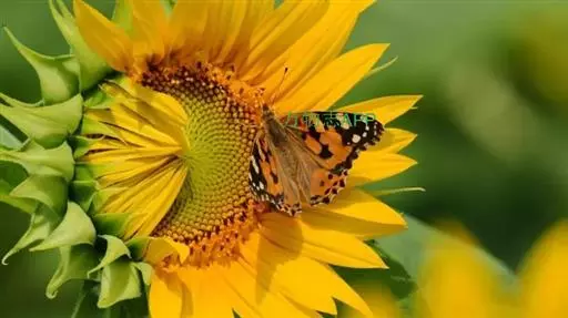 向日葵为头状花序,生长在茎的顶端,俗称花盘。其形状有凸起、平展和凹下三种类型。花盘上有两种花,即舌状花和管状花。舌状花1-3层,着生在花盘的四周边缘,为无性花。授粉发生在盘状小花外缘的向日葵的花部分上,并且朝向中心移动更多,并且在向日葵授粉达到成熟后需要长达30天。花的颜色和大小因品种而异,有橙黄、淡黄和紫红色,具有引诱昆虫前来采蜜授粉的作用。管状花,位于舌状花内侧,为两性花。花冠的颜色有黄、褐、暗紫色等。