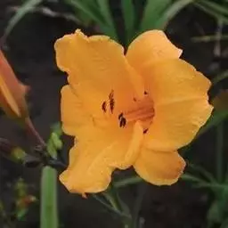 金娃娃萱草:是萱草的人工栽培的园艺品种。地下具根状茎和肉质肥大的纺锤状块根。叶基生,条形,排成两列,…