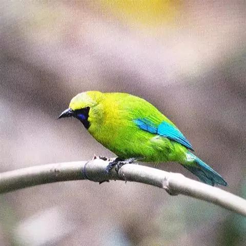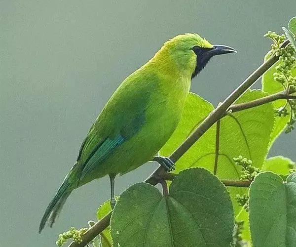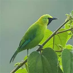 蓝翅叶鹎(学名:Chloropsis moluccensis):小型鸟类,体长15-18厘米。雄鸟通体草绿色,尾蓝绿色,肩和翅亮蓝 色,胸缀有黄色,颏、喉黑色。雌鸟颏,喉蓝绿色。