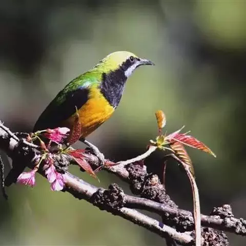 金额叶鹎是和平鸟科、叶鹎属的鸟类。体长16-20厘米。额和头顶前部金桔色,整个上体包括两翅表面草绿色。…