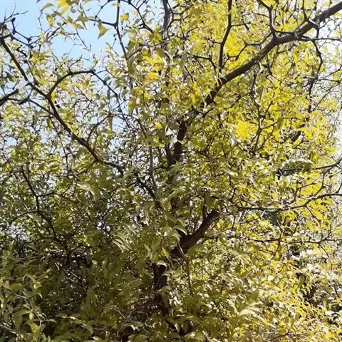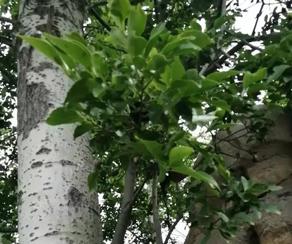 树皮暗灰色,粗糙,不规则纵裂。幼树枝条直立,且被白色毛;老树枝条先端下垂,有时木栓质发达成为瘤状。…