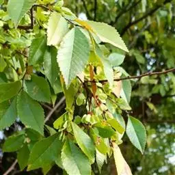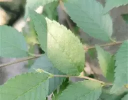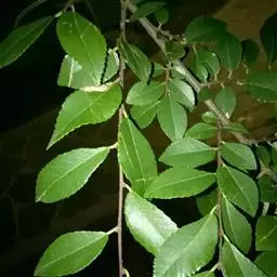 榉树 乔木,高达30米,胸径达100厘米;树皮灰白色或褐灰色,呈不规则的片状剥落;当年生枝紫褐色或棕褐色,疏被短柔毛,后渐脱落;叶薄纸质至厚纸质,大小形状变异很大,卵形、椭圆形或卵状披针形,长2-9厘米,宽1-4厘米,先端渐尖或尾状渐尖,基部有的稍偏斜,稀圆形或浅心形,边缘有圆齿状锯齿,具短尖头,侧脉8-14对;上面中脉凹下被毛,下面无毛。叶柄长4-9毫米,被短柔毛。