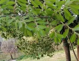 10月下旬至11月上旬,当果实由青转褐色时采种。采用自然脱落法或敲打小枝法在地面收集种子。采种后要先除去枝叶等杂物,然后摊在室内通风干燥处自然干燥2~3d,再行风选。贮存前于室内自然干燥5~8d,使种子含水量降到13%以下。