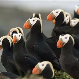 阿拉斯加原住民以角海鹦为食品,用其羽毛制作衣物,在白令海峡地区也采集鸟卵为食物 (“阿拉斯加海鸟资料丛刊”,2006年)