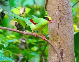 金额叶鹎是和平鸟科、叶鹎属的鸟类。体长16-20厘米。额和头顶前部金桔色,整个上体包括两翅表面草绿色。…