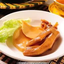 杏仁豆腐切块,淋上焦糖即可。